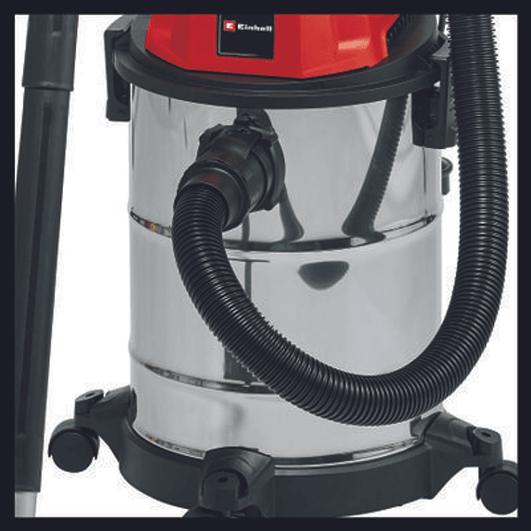 La aspiradora polvo / agua Einhell TC-VC 1820 S es una potente ayuda con una clasificación de 1250 W para trabajos de limpieza en profundidad y en profundidad. Una aspiradora polvo / agua proporciona un buen servicio para la limpieza cuidadosa de superficies que no son sensibles al agua. Para el trabajo doméstico, para alfombras o textiles fijos, baldosas o todo tipo de baldosas vidriadas con poros abiertos, la limpieza normal de superficies por sí sola a menudo no es suficiente. También se puede utilizar una aspiradora polvo / agua para limpiar el interior de todo tipo de vehículos, hasta las puntas del material textil, ya sean asientos y revestimientos del techo o alfombrillas y molduras interiores. La aspiradora polvo /agua de Einhell está equipada con un tanque de acero inoxidable resistente a la oxidación y con una capacidad de 20 litros. El sistema de mangueras con un diámetro de 36 mm mantiene un alto flujo de aire y suciedad. La conexión de soplado es para limpiar con soplado áreas difíciles de alcanzar, como en esquinas incómodas o detrás de armarios sólidos. Para facilitar el transporte y la flexibilidad de uso, hay ruedas. Para mantener el orden durante el uso, hay un práctico soporte para accesorios y un soporte para cables en la carcasa. El producto se suministra completo con una manguera de succión de plástico de 1,50 m con tubo de extensión de tres piezas, una boquilla para pisos para alfombras y pisos lisos junto con una boquilla para ranuras, además de un filtro de espuma, una bolsa de filtro azul y una bolsa de suciedad de papel, de modo que nada se interpone en el camino para comenzar de inmediato.