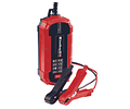 El cargador de baterías CE-BC 2 M de Einhell es un cargador de baterías inteligente con control por microprocesador para los más distintos tipos de baterías de vehículos. Adaptado a las baterías potentes y tecnológicamente avanzadas de los actuales vehículos, el cargador de baterías dispone de una serie de mecanismos de protección y cuidado. El objetivo principal de su desarrollo es una carga rápida y suave, de modo que se logre una vida útil lo más prolongada posible de la batería a plena potencia. El funcionamiento del cargador se muestra mediante un indicador de carga detallado y sencillo, como en el caso de los dispositivos convencionales. El todoterreno de Einhell es adecuado para baterías de gel, AGM, así como baterías de plomo-ácido sin o casi sin necesidad de mantenimiento. El CE-BC 2 M se adapta automáticamente a la tensión de la batería de vehículos de 12 V y el ciclo de carga multietapa del cargador de baterías de Einhell se supervisa y adapta automáticamente mediante el control por microprocesador. La electrónica de control inteligente analiza la batería conectada e inicia las etapas correctas según el estado. La función de carga de conservación protege y cuida la batería para un estado de carga duradero e ideal. Por consiguiente, el CE-BC 2 M es especialmente apropiado, entre otros, para vehículos de temporada con períodos prolongados fuera de circulación: En lugar de permitir que la batería se descargue lentamente por completo y, por lo tanto, correr el riesgo de una descarga profunda, la batería se mantiene cuidadosamente en su nivel óptimo mediante la carga de conservación. Esto prolonga la duración de uso e impide una sustitución costosa de una batería de vehículo estropeada. Los coches, motocicletas o patinetes están listos para el uso al comienzo de la temporada. Se ha desarrollado un modo de carga de invierno especialmente para temperaturas exteriores por debajo de 5 °C. Una protección automática contra sobrecargas, cortocircuitos e inversión de polaridad protege tanto al cargador como también a la batería. El cargador de baterías de Einhell satisface la clase de protección IP65, por lo que está protegido frente al polvo y contra salpicaduras. El indicador LED de tensión de la batería y progreso de carga muestra de un vistazo en qué estado de carga se encuentra la batería y el modo de configuración del cargador. A este respecto, el cargador diferencia etapas de carga del 25 %, 50 %, 75 % y 100 %, una carga de vehículo de 12 V, así como el “modo de invierno”. Una luz de aviso le advierte al usuario inmediatamente sobre eventuales problemas. Gracias a los bornes de batería completamente aislados se puede conectar el cargador de baterías de Einhell de forma sencilla y segura. La carcasa está provista de ojales de suspensión para la fijación en la pared.